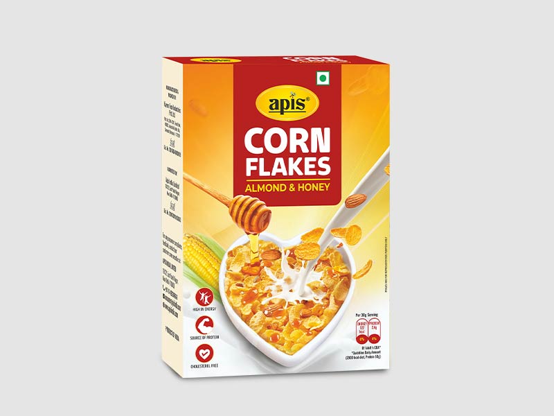 Apis Corn flakes are much-loved breakfast cereals, as they are not very high in calories and form quite a filling meal. Having a bowl of cornflakes and milk in the morning not only keeps you full for longer, but also prevents you from bingeing in between of the meals.Apis Cornflakes are packed with minerals, vitamins, dietary fibre, proteins and carbohydrates which are all essential for healthy living.