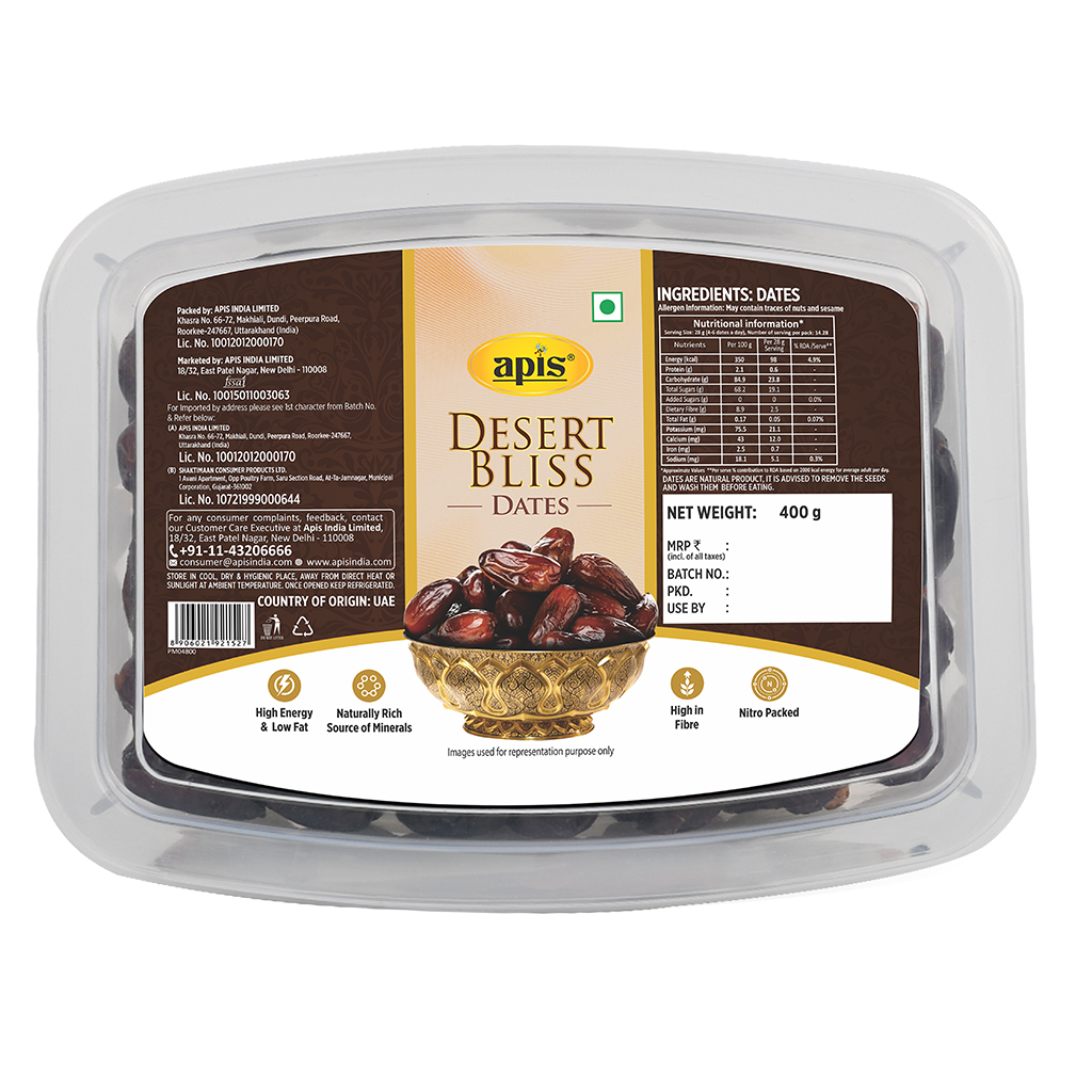 Desert Bliss Dates are premium quality dates, renowned for their rich, sweet taste and soft texture. These dates are packed with fiber, vitamins, and minerals, making them a wholesome and healthy snack option. Processed and packed in state-of-the-art facilities, Desert Bliss Dates ensure the retention of their natural flavor and nutritional value. Indulge in the exquisite taste and health benefits of Desert Bliss Dates.